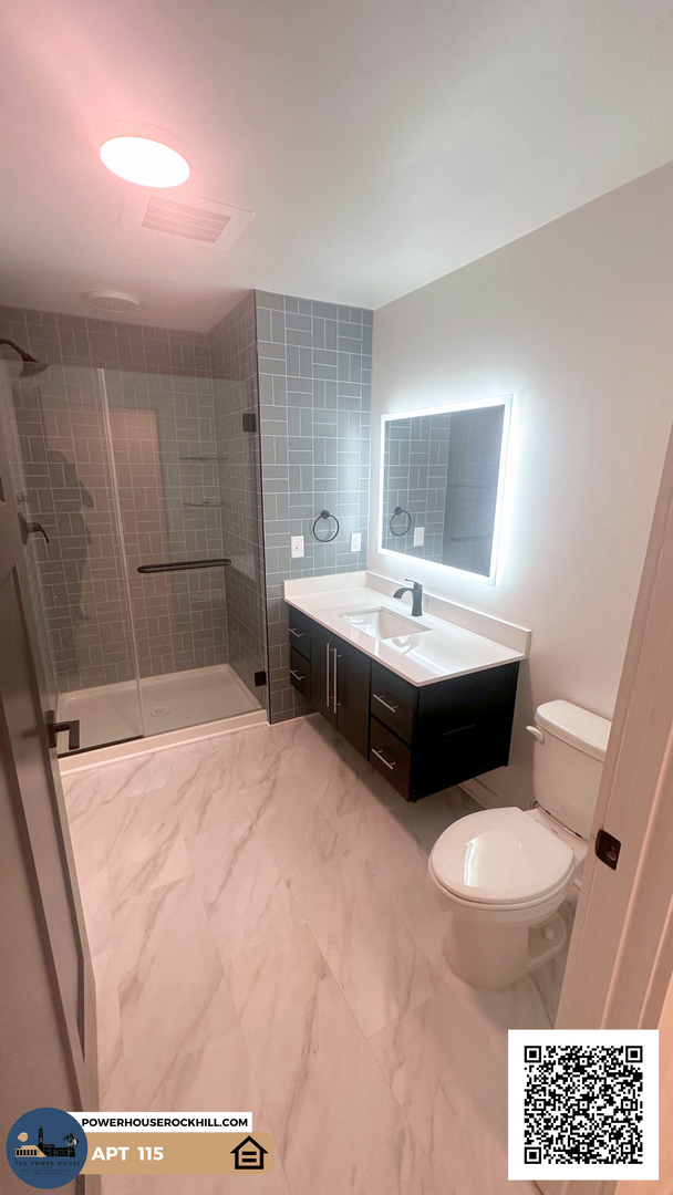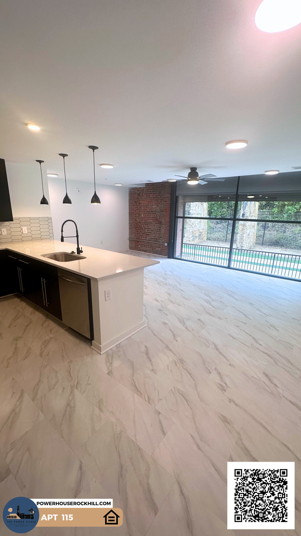 The largest offering that the 1st floor has at Power House, with over 800 square feet of livable space, this unit has everything you need for luxurious apartment living. Floor to ceiling windows with custom shades? Check. Custom cabinets, granite countertops, and the best finishes? Check. A short walk to the elevator, food hall and brewery? Triple check. Soundproofed walls and sound diffusing floor features in tandem with insulation and drywall on both sides to ensure your unit is a quiet safe haven from the activity surrounding you? Now we're just bragging. You will not want to miss this unit; contact us today for pricing and availability.